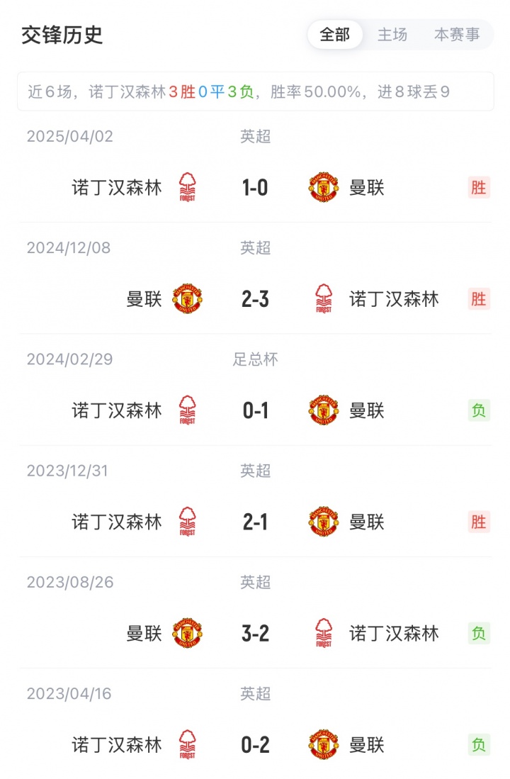 此前曼联迎来英超3连胜,9轮16分位居英超第6;诺丁汉丛林近4轮全败,5分排第18位列左迁区。