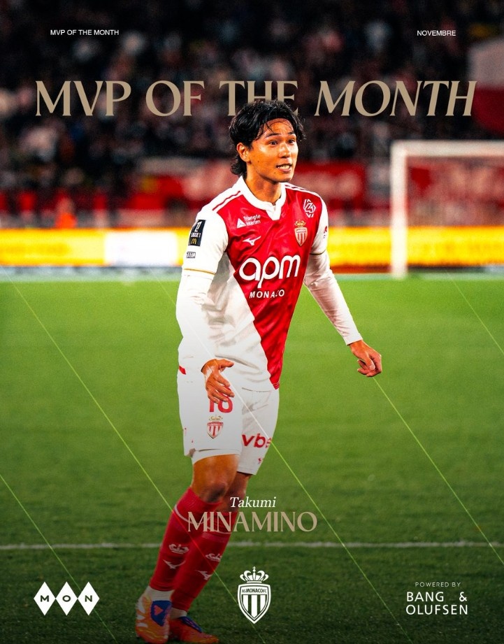 12月4日讯 摩纳哥官方讯息,日本国脚南野拓实当选队内11月最好球员。