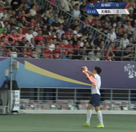 7分钟后,无锡攻势再度袭来,李皓然接队友下底横传毛糙打佛门,为无锡将比分扩大至3-0!进球后的他向看台举起了队友的球衣!