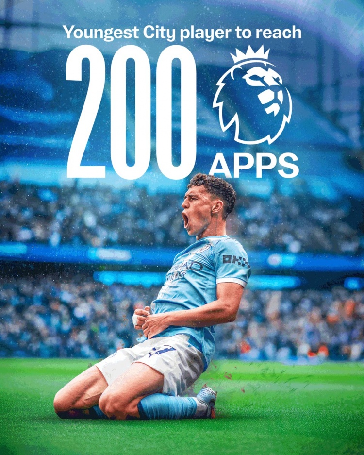福登将以25岁158天的年岁杰出斯特林(26岁284天),成为历史上为曼城出战200场英超比赛最年青的球员。