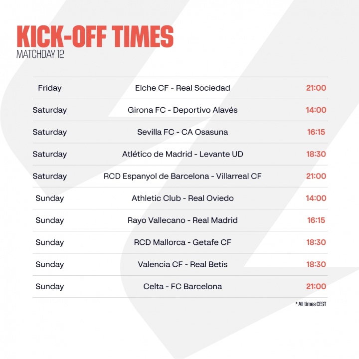 2025/26赛季西甲联赛赛程已近三分之一,第12轮争夺行将打响。本轮多场对决颇具看点,尤其皇家马德里与巴塞罗那双双客场作战,挑战重重。