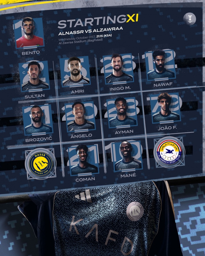 利雅得凯旋首发:24-本托、2-哈纳姆、5-阿姆里、26-伊尼戈-马丁内斯、12-纳瓦夫、11-布罗佐维奇、20-安吉洛、23-叶海亚、79-菲利克斯、21-科曼、10-马内