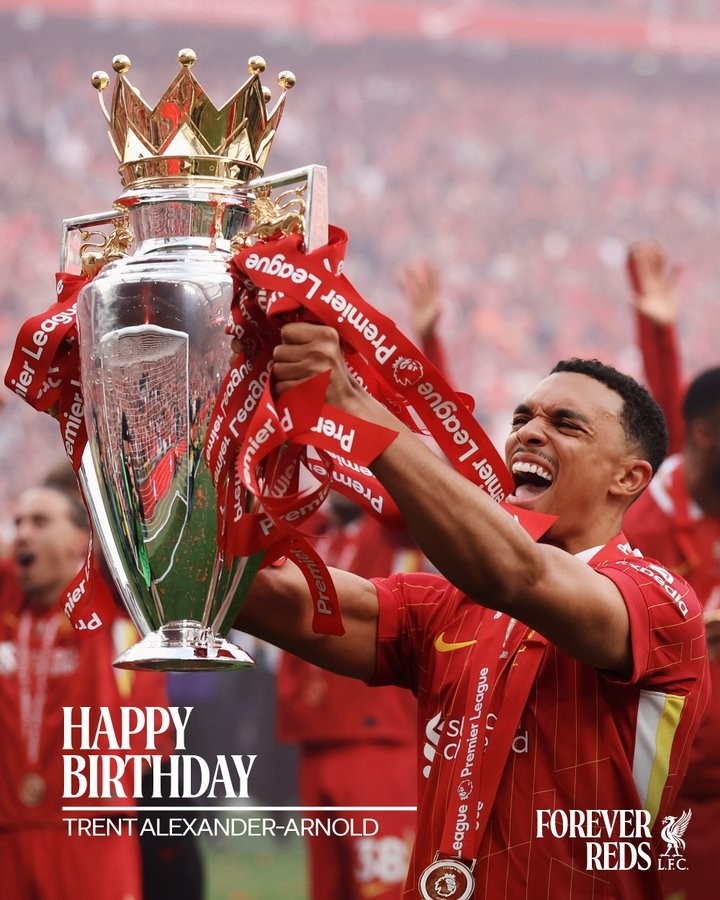 利物浦官推写说念:“寿辰得志,阿诺德!”