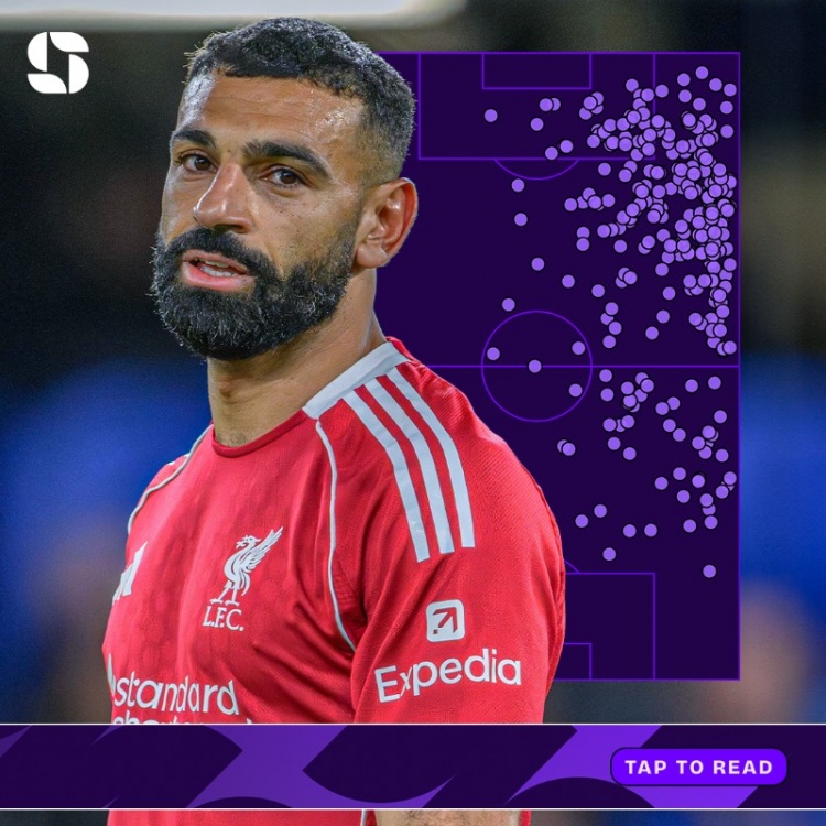 Squawka指出,萨拉赫本赛季进展欠安,他平均每90分钟唯有5.6次对方禁区内触球和1.3次射门。