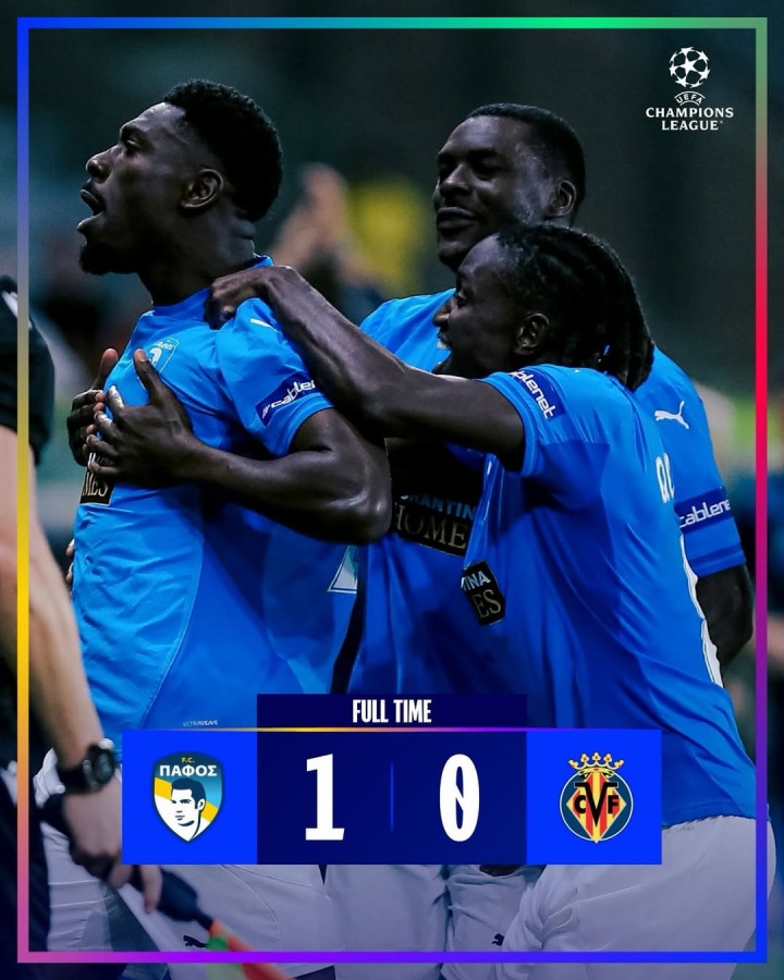 11月06日讯 欧冠第4轮,塞浦路斯球队帕福斯主场1-0驯顺比利亚雷亚尔,这支欧冠新军取得了队史欧冠正赛的首胜。