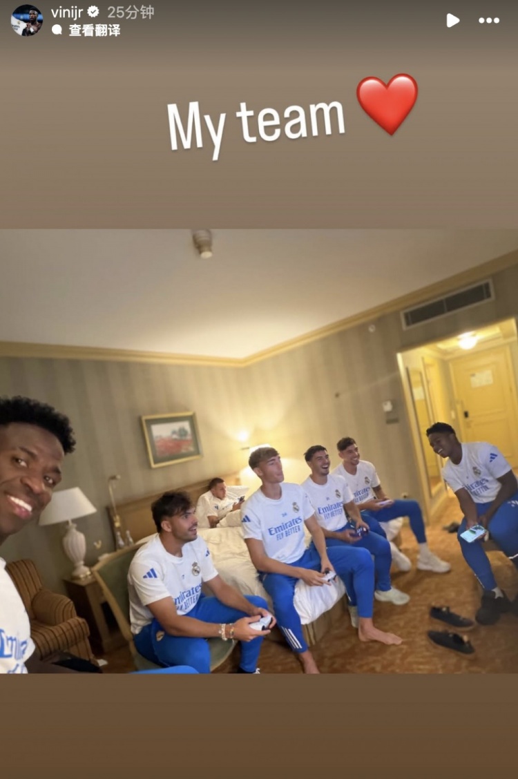 赛前,维尼修斯在酬酢媒体晒出球队一皆打游戏的相片,相片中迪亚斯、赫伊森等东谈主在内。并配文:我的团队♥️
