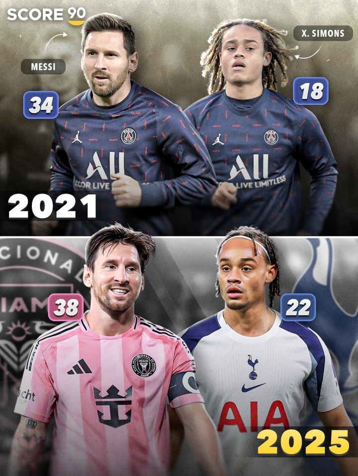 2021年,梅西、哈维-西蒙斯一同遵守巴黎