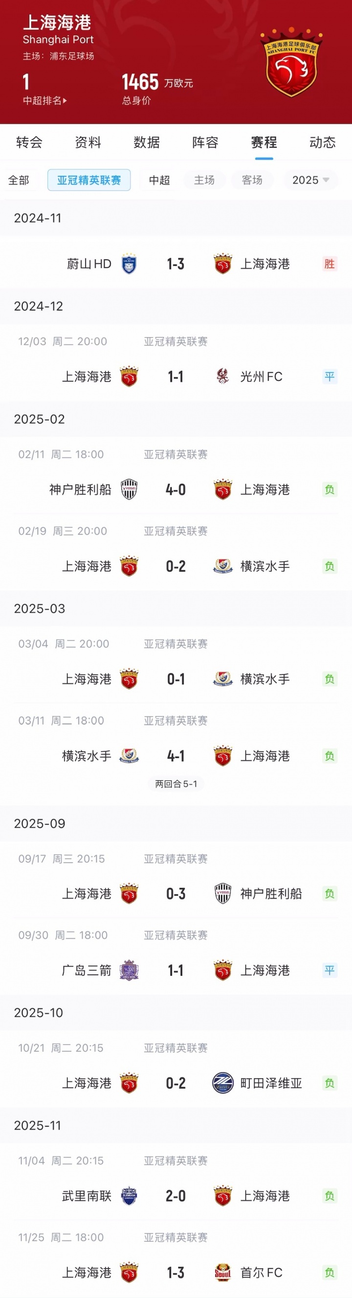 尔后一年里,海港在亚冠赛场相连10场不堪,技能战绩仅为2平8负。