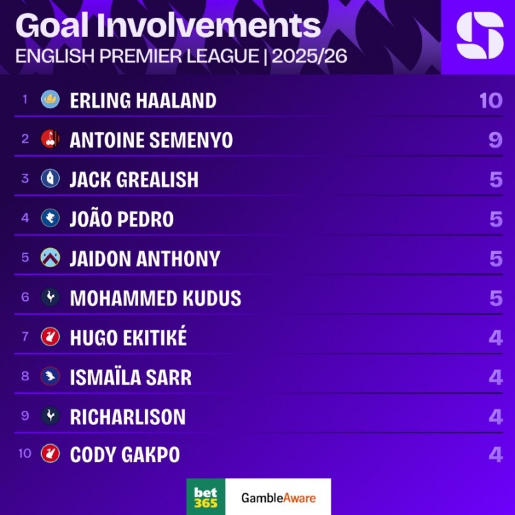 10月6日讯 英超第7轮比赛,曼城以1-0的比分小胜布伦特福德。本场比赛,哈兰德打进全场独一进球,成为本赛季英超首位径直参与10粒进球的球员。