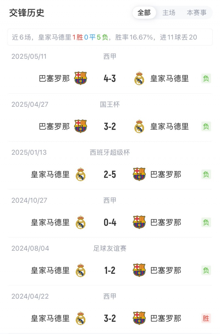 联赛方面,皇马8胜1负领跑,跳跃巴萨2分。本场皇马若取胜,将把跳跃上风扩大到5分;巴萨若取胜则将反超皇马登顶。