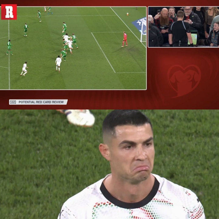 葡萄牙vs爱尔兰下半场,C罗因为肘击算作染红!